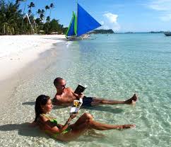 This one is a picture of Boracay in the Philippines. My family & I used to vacay here all the time, and I've read whilst sitting on one of the deck chairs or hammocks by the beach when I was a child, but unfortunately I haven't attended this destination since I've been an adult. And yes the water is this crystal clear and the sand is white!